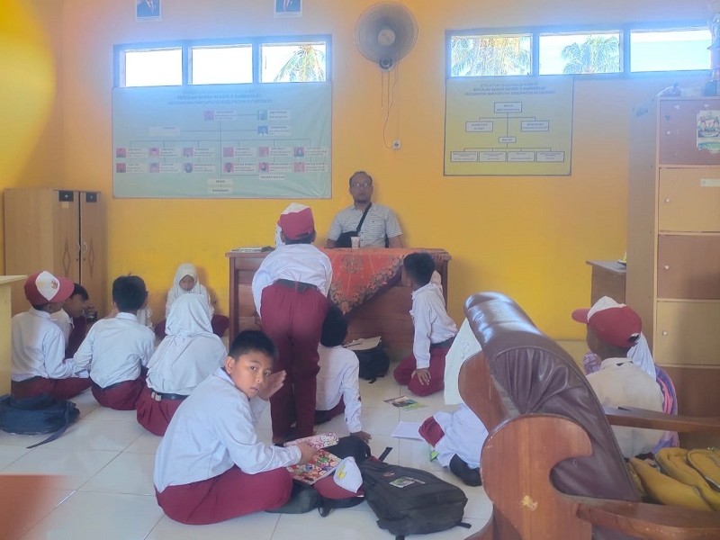 Proses pembelajaran sdn 5 sumberejo yang di lakukan di ruang guru ini dilakukan karena proses renovasi sekolah sdn 5 sumberejo yaitu 3 bangunan kelas dan 1 ruang uks.